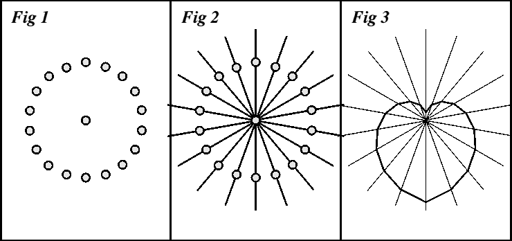 (C) Lightly mark 18 “circumference” dots around the protractor, the spacing between each dot being 20° of angle. See Figure 1.