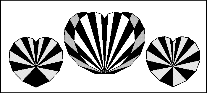 Variations in the areas shaded and of the borders surrounding the heart are illustrated in the diagrams. Use your imagination and enjoy making your own alterations and, indeed, find out that other mathematical “pictures” are possible using the same basic idea of Archimedes' spiral.